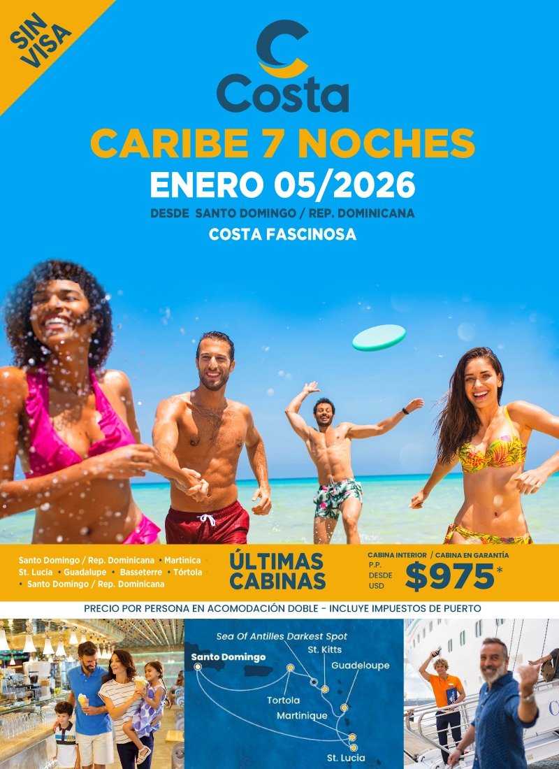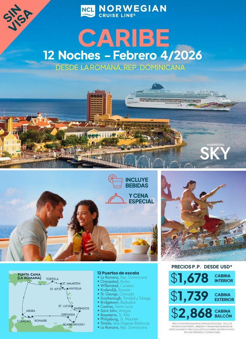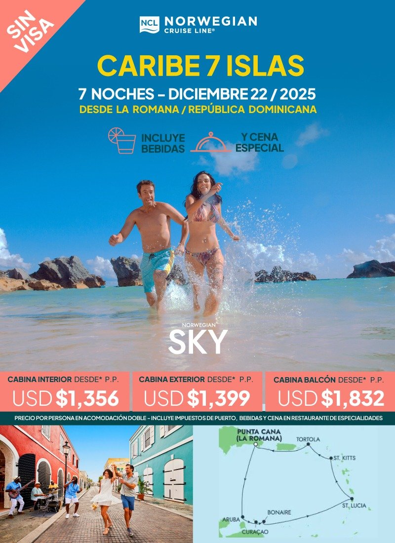 Republica Dominicana, Aruba, Curazao, Tortola.