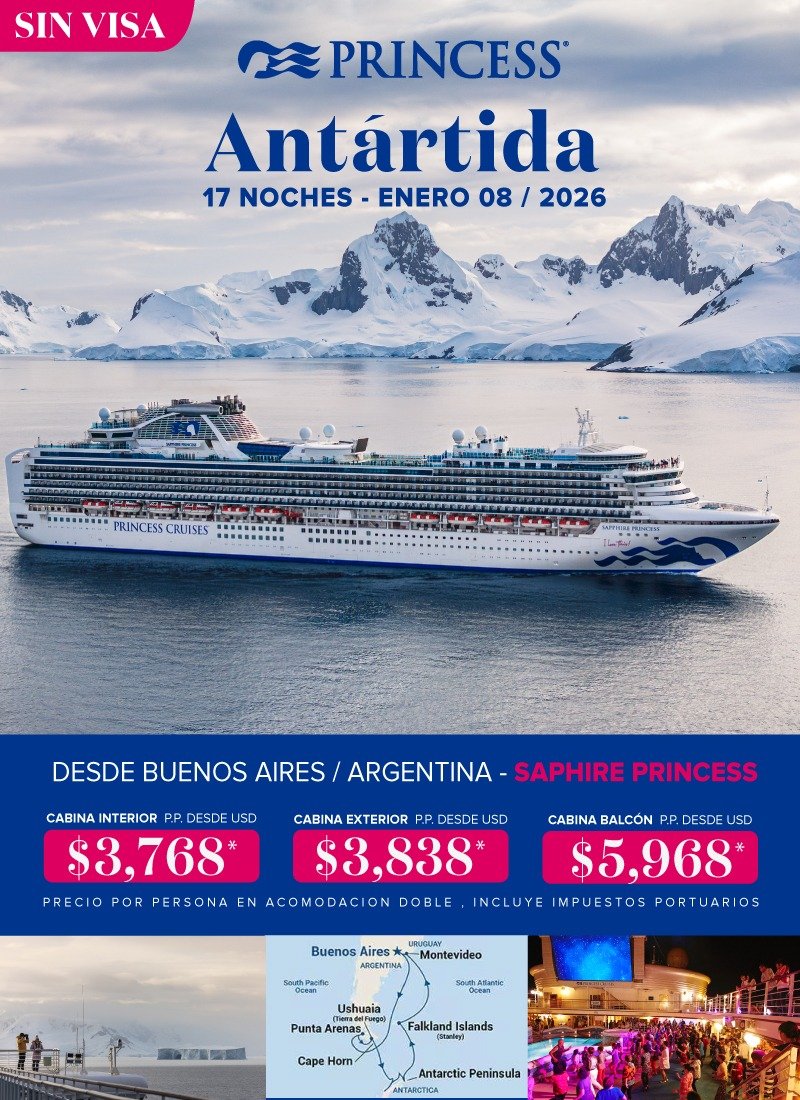 Buenos Aires, Peninsula Antartica, Montevideo.