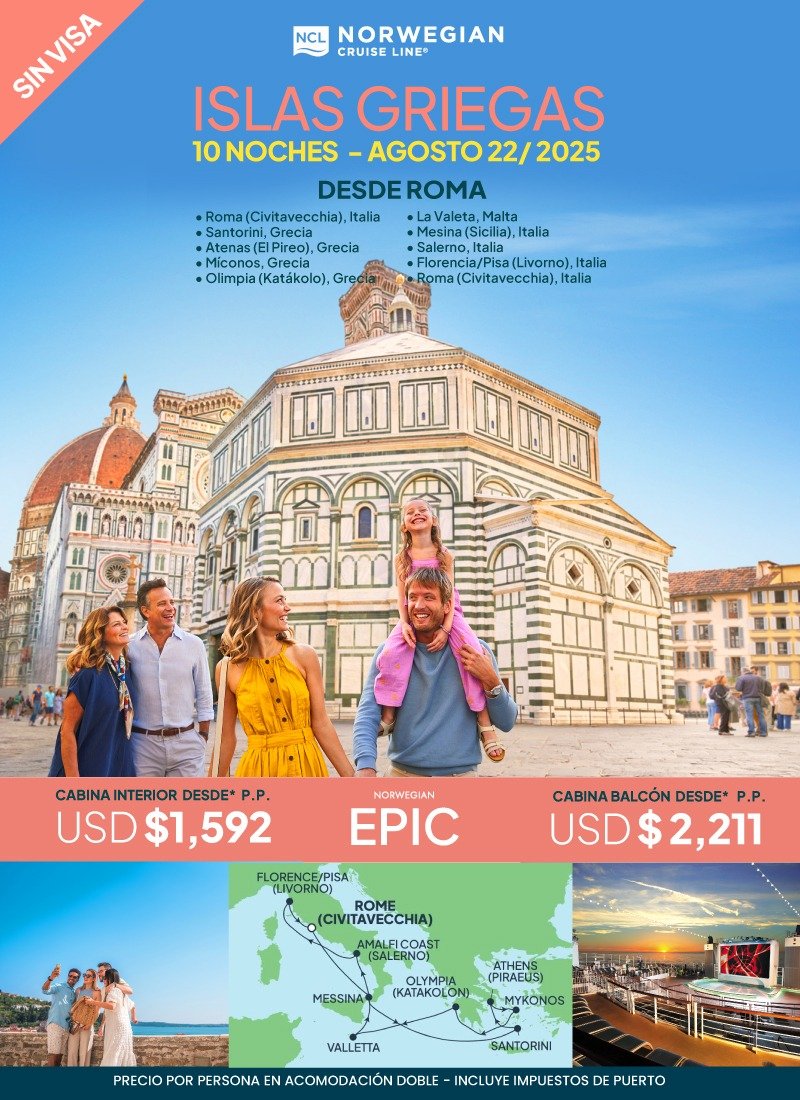 Roma, Miconos, Sicilia, Florencia.